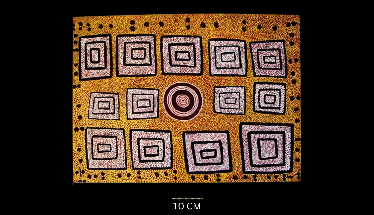 Remarkable for its scale, the painting stands out among works of the era. Seven specially transported composition boards were delivered to Papunya to allow artists, including Tjakamarra, to create large-format works suitable for international exhibition.