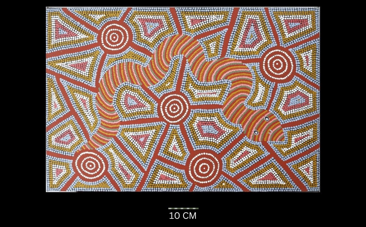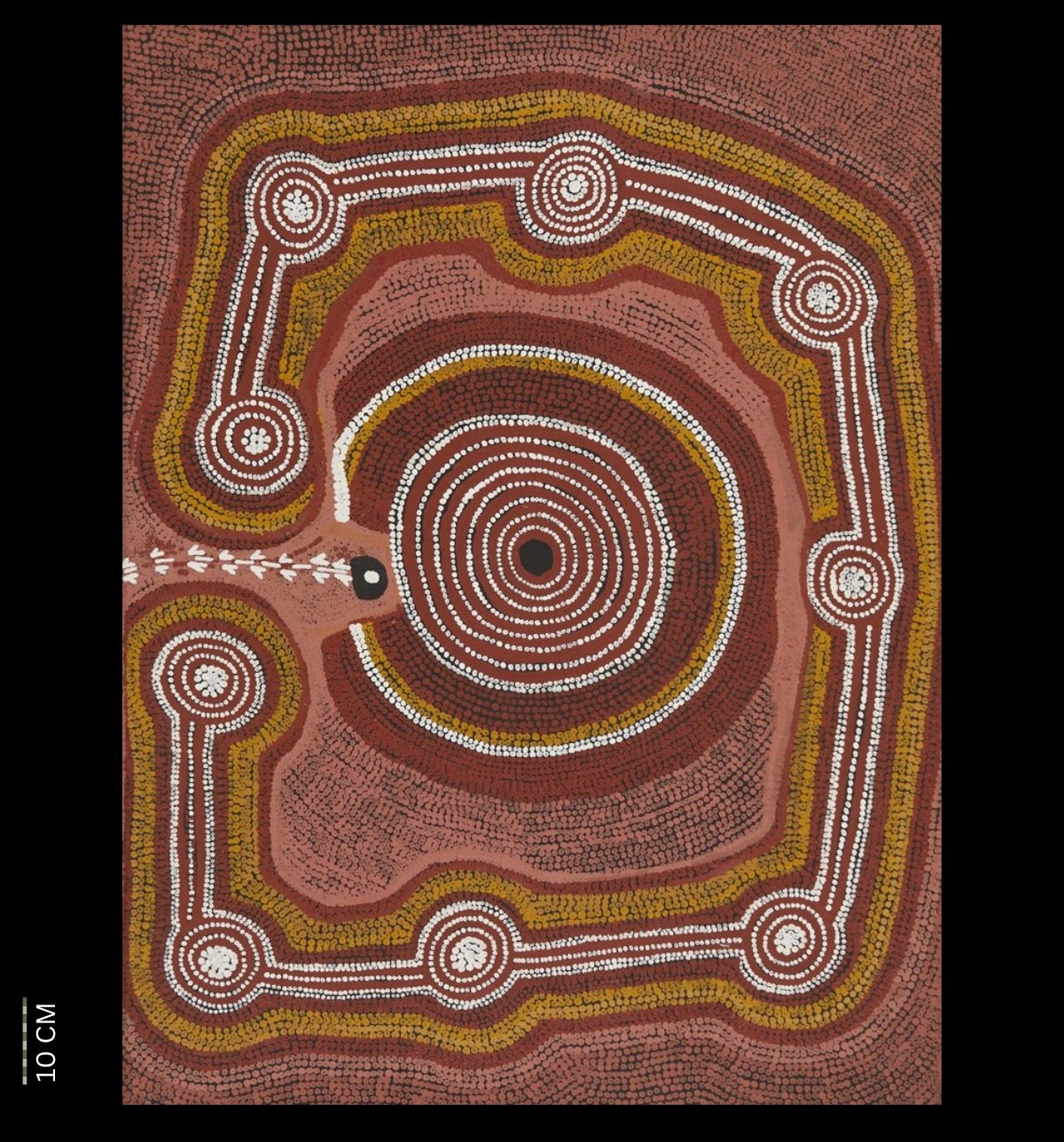 Synthetic polymer paint on canvas, papunya Tula Artists cat no. CT 860340,
